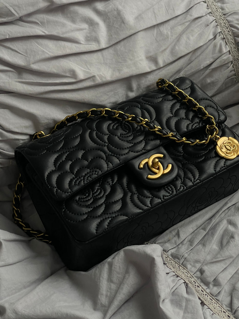Жіноча сумка Chanel Classic Double Flap Bag Camellia PREMIUM